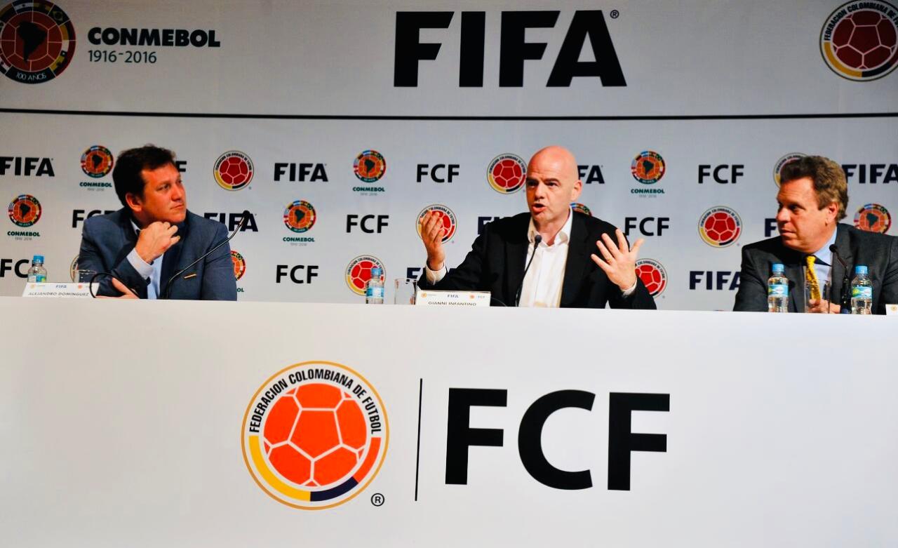 Según la propia FIFA, en esa visita Infantino felicitó a la selección colombiana por su clasificación al torneo de fútbol olímpico de Río 2016 y subrayó la importancia del país en el mapa futbolístico del continente.