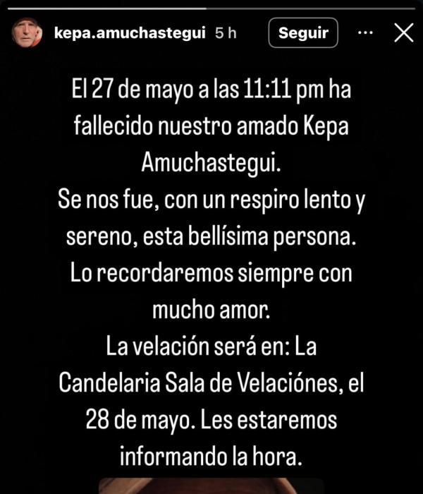 En el mensaje publicado, se informó que Amuchastegui murió alrededor de las 11:11 p.m., con un “respiro lento y sereno”. Asimismo, se anunció que su velación comenzaría el miércoles 28 de mayo en la Sala de Velaciones La Candelaria, en Bogotá.