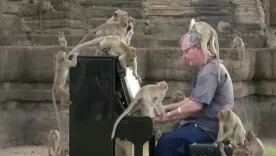 Músico británico entretuvo a monos salvajes en Tailandia