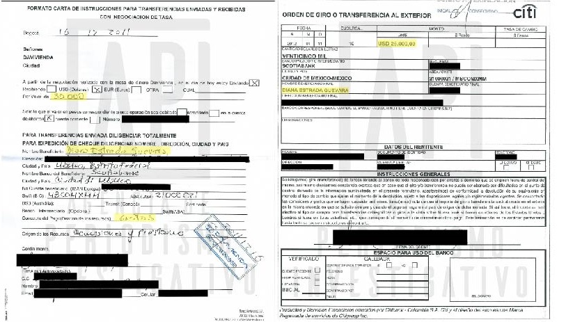 Los documentos recolectados por esta Agencia revelan que el 21 de diciembre de 2011, Marcela envió US$20.000 a Diana. Ese día había realizado la compra de la moneda que le representó casi $40 millones a lo que le agregó una transferencia electrónica por Davivienda de US$5.000.