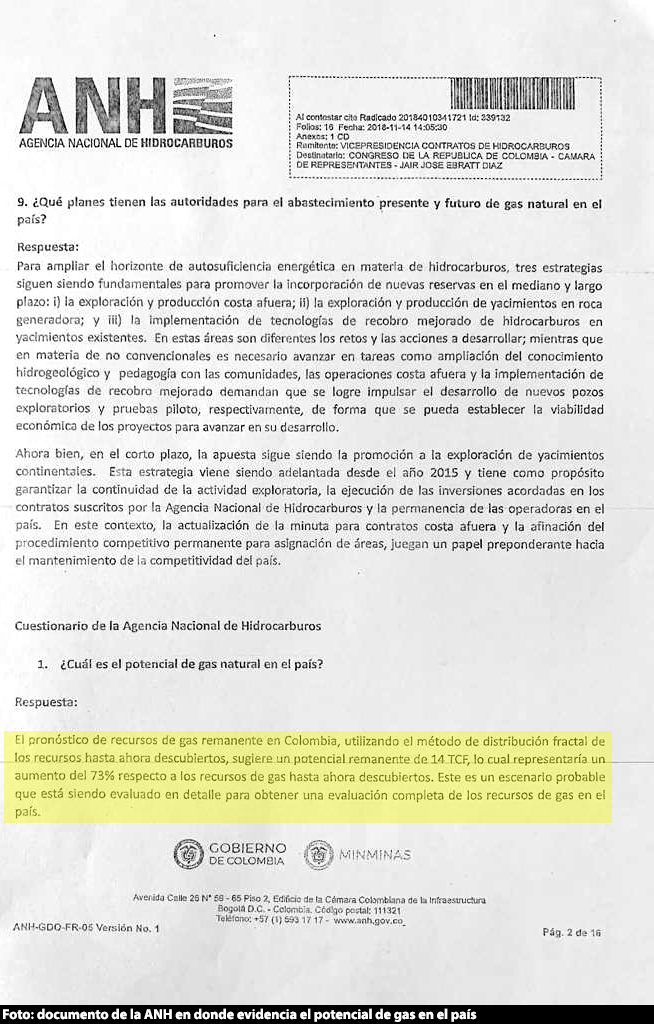A pesar de estos hallazgos y de estudios como el Arthur D.Little que establecen que el pais tiene un gran potencial gasífero, la UPME advierte desabastecimiento de gas. En contraposición, los certificados de producción reportados por las empresas, también demuestran que las reservas probadas están en yacimientos convencionales, es decir, que no requieren fracking para su extracción.