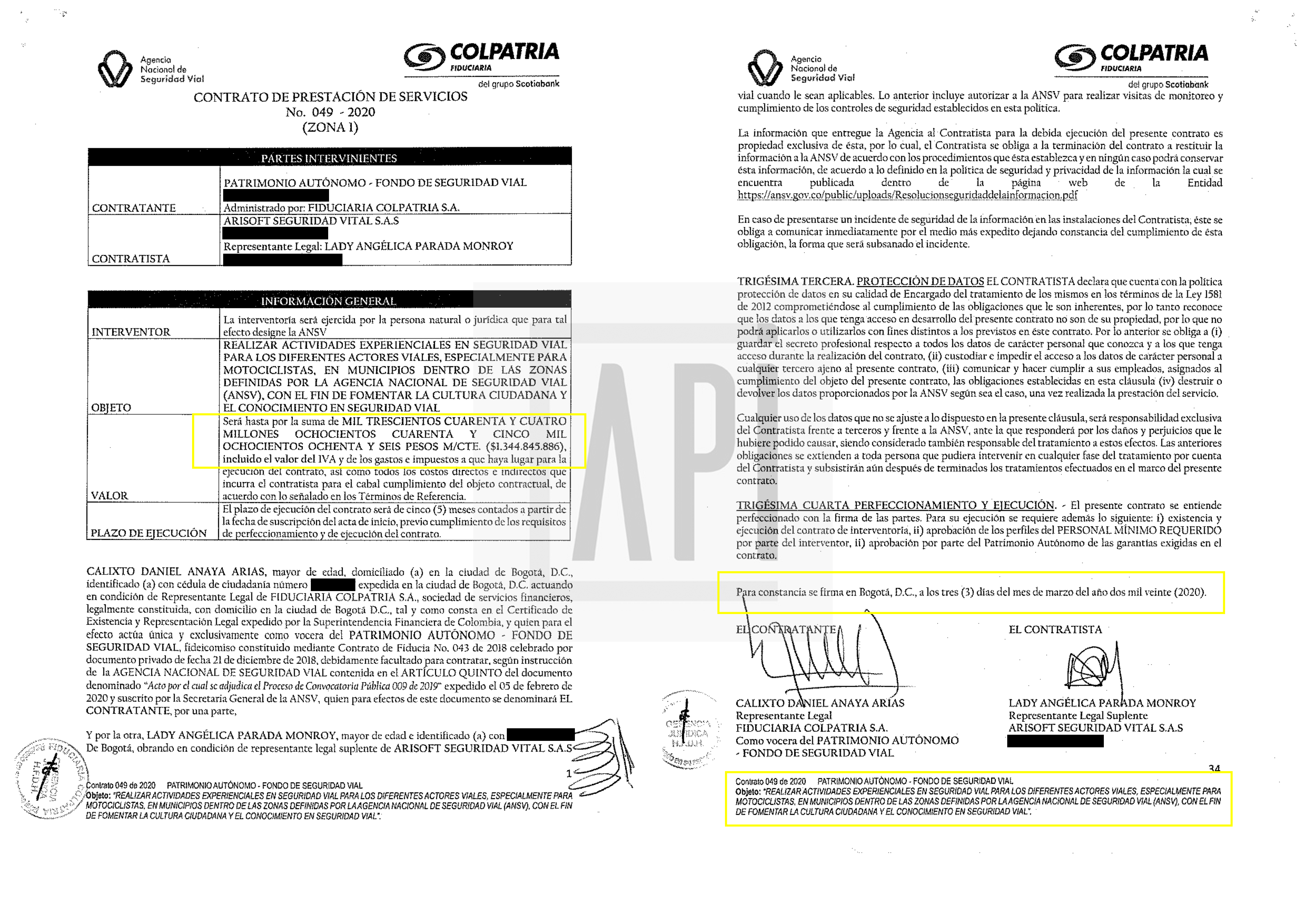 El pasado 15 de abril, la Agencia de Seguridad Vial suscribió otro contrato. Se trata del 049 de 2020 para realizar actividades experenciales en seguridad vial para los diferentes sectores viales, especialmente para motociclistas, “con el fin de fomentar la seguridad ciudadana y el conocimiento en seguridad vial”.