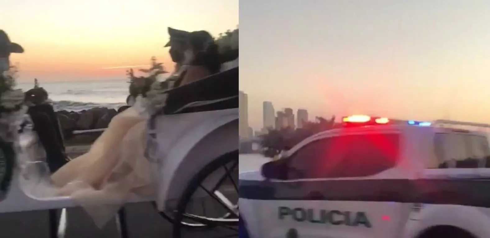 Se trataba de una novia, a bordo de un tradicional carruaje cartagenero pero adornado con el logotipo de la Policía Nacional.