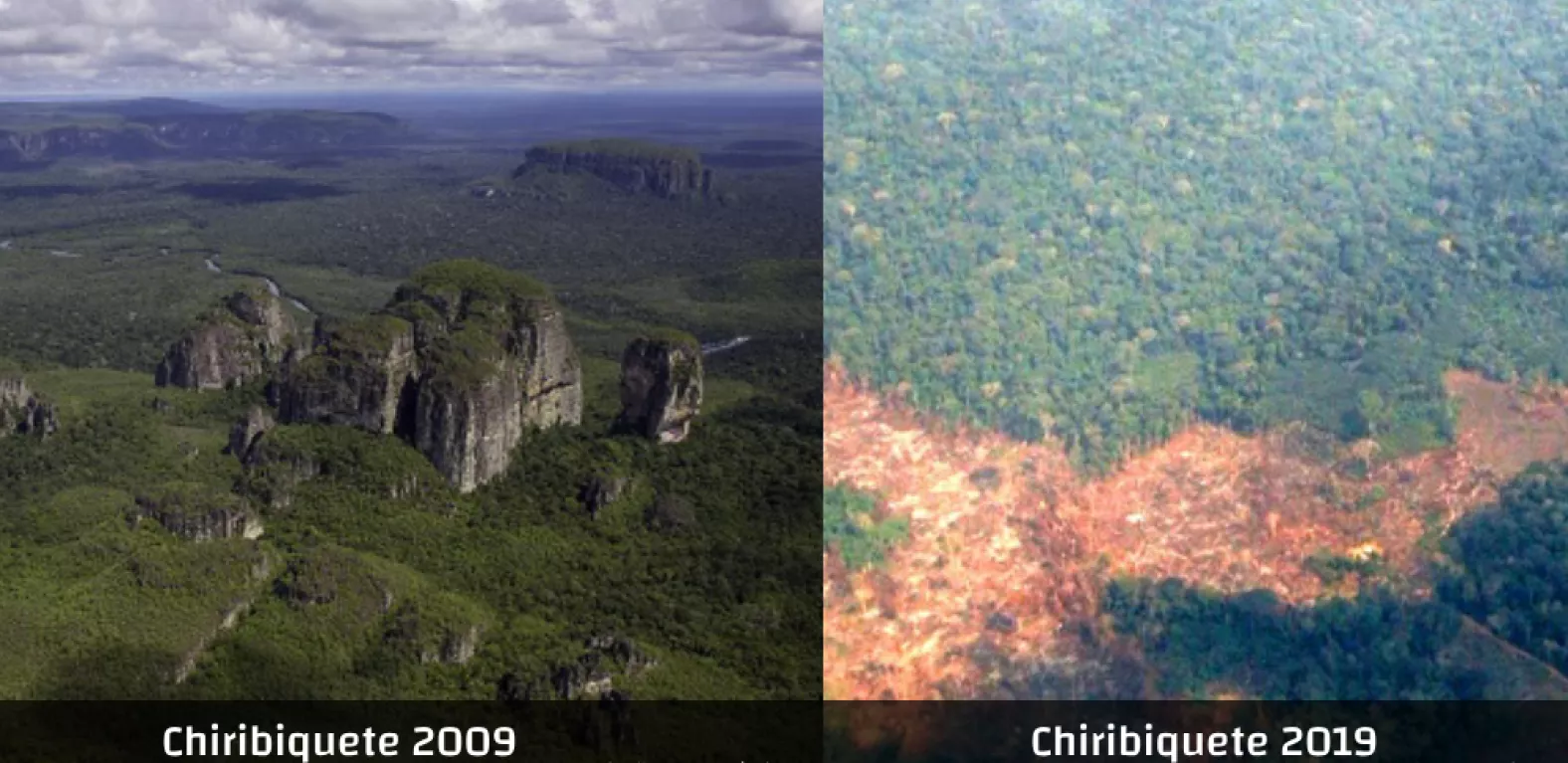 La organización Forest Watch acaba de dar a conocer un mapa que muestra que en los últimos seis meses se ha registrado una pérdida aproximada de 700 hectáreas en el área de amortiguación del parque, especialmente en la margen derecha del río Caguán en el departamento del Caquetá. Otras cifras del Instituto Agropecuario, ICA, señalan que en el entorno de Chiribiquete hay cerca de 1.6 millones de cabezas de ganado, un asunto que representa una extensa área deforestada mayor a la carga animal, lo que genera otros fenómenos como degradación de suelos y acaparamiento de tierras.