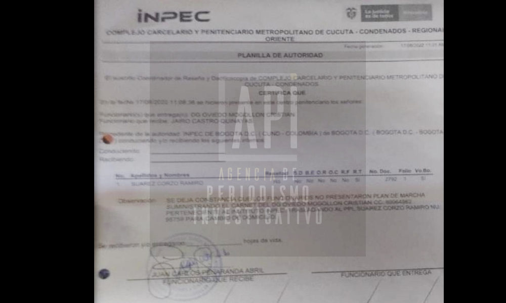 El afán por llegar a Cúcuta de Suarez Corzo, llevó a los funcionarios de la entidad, específicamente a dos adscritos a la Penitenciaría La Picota a saltarse todas la reglas.