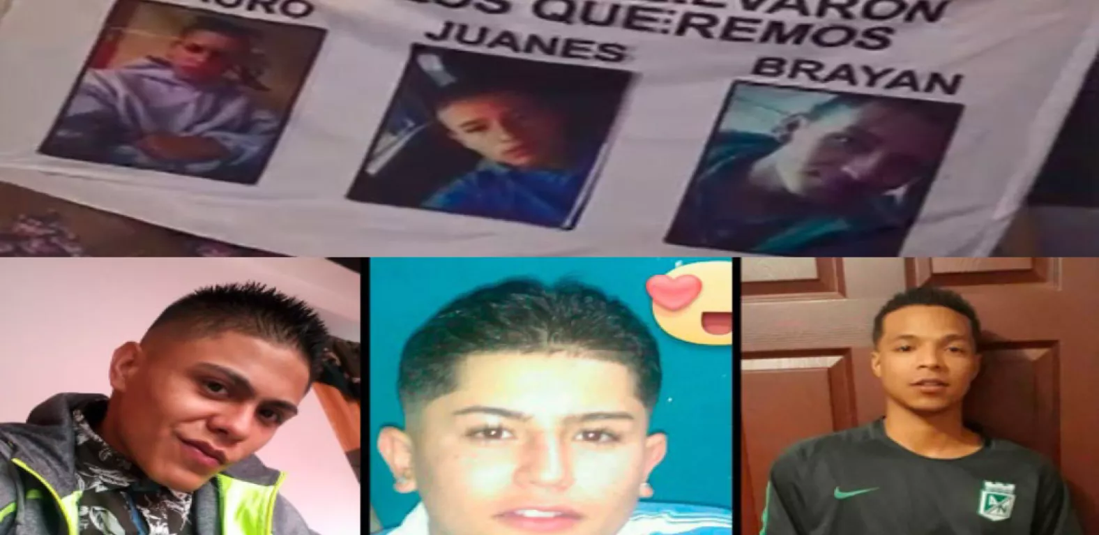 En Bogotá, los jóvenes desaparecidos son Brayan Andrés Montaña de 17 años, Mauricio Castillo de 16 años y Juan Esteban Moreno de 14 años. Su ausencia fue reportada el 22 de febrero de 2017. La última vez que se vio a los entonces adolescentes, fue en el sector de San Cristobal Norte, mientras trabajaban haciendo acarreos para ganarse unos pesos y ayudar al sostenimiento de sus familias.