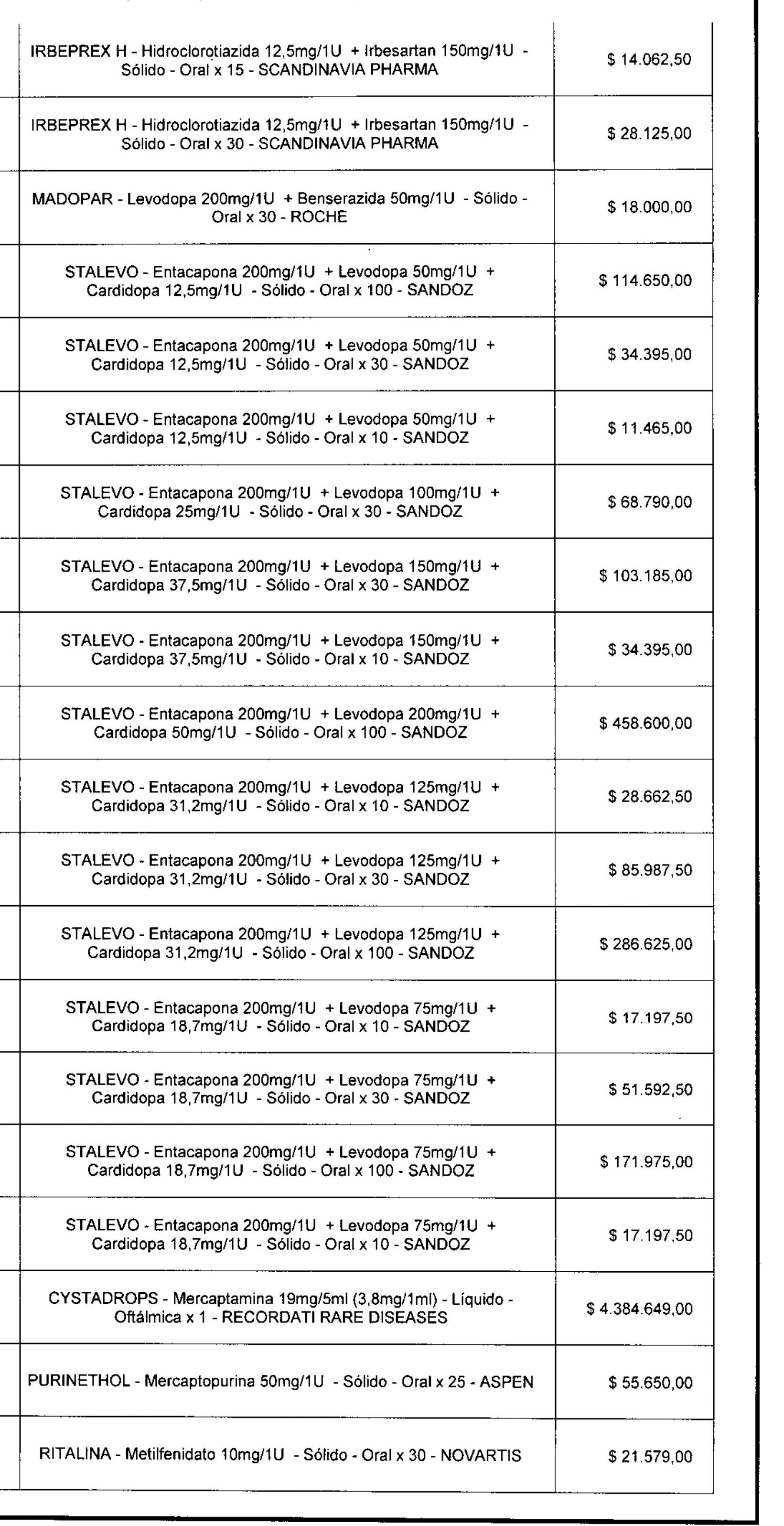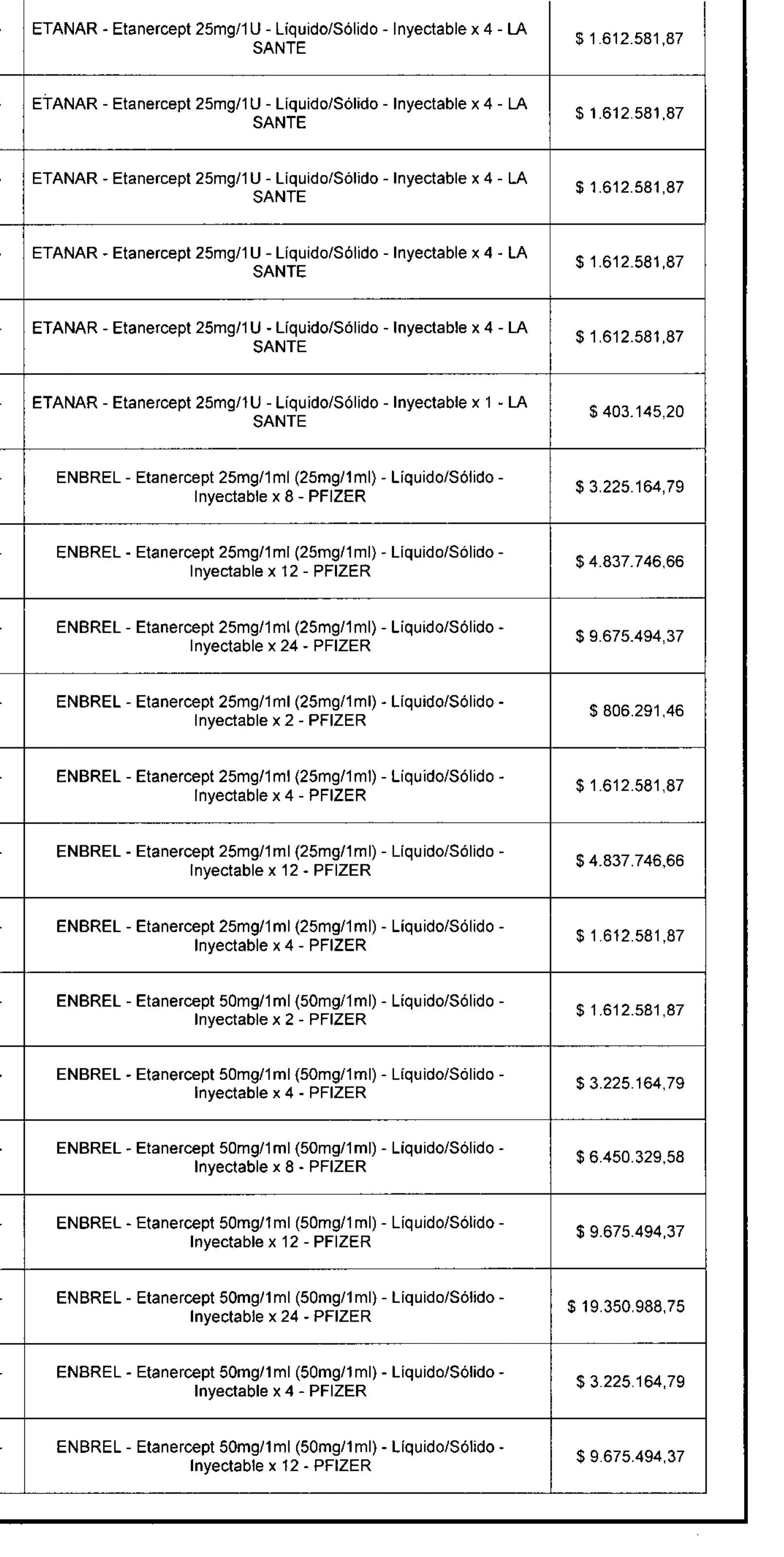 El siguiente grupo corresponde a otras nueve referencias de medicamentos vitales no disponibles para las operaciones realizadas con recursos asignados a la salud y además cuyo precio no había sido actualizado.