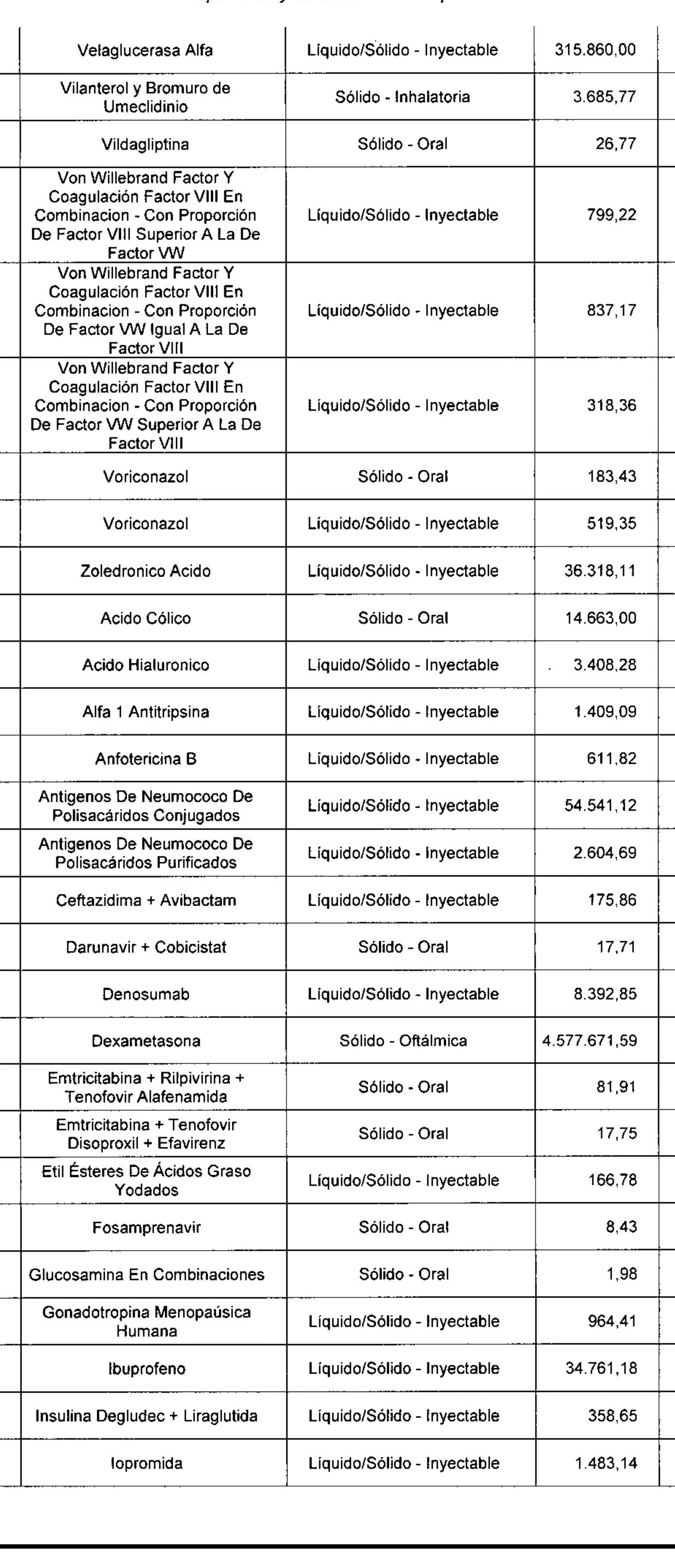 Para tal fin, la comisión fijó el listado de los medicamentos sujetos al régimen de control directo de precios, impuso el precio máximo de venta y el precio por unidad de regulación de Medicamentos Vitales No Disponibles, de acuerdo con el Índice de Precios al Consumidor, IPC.