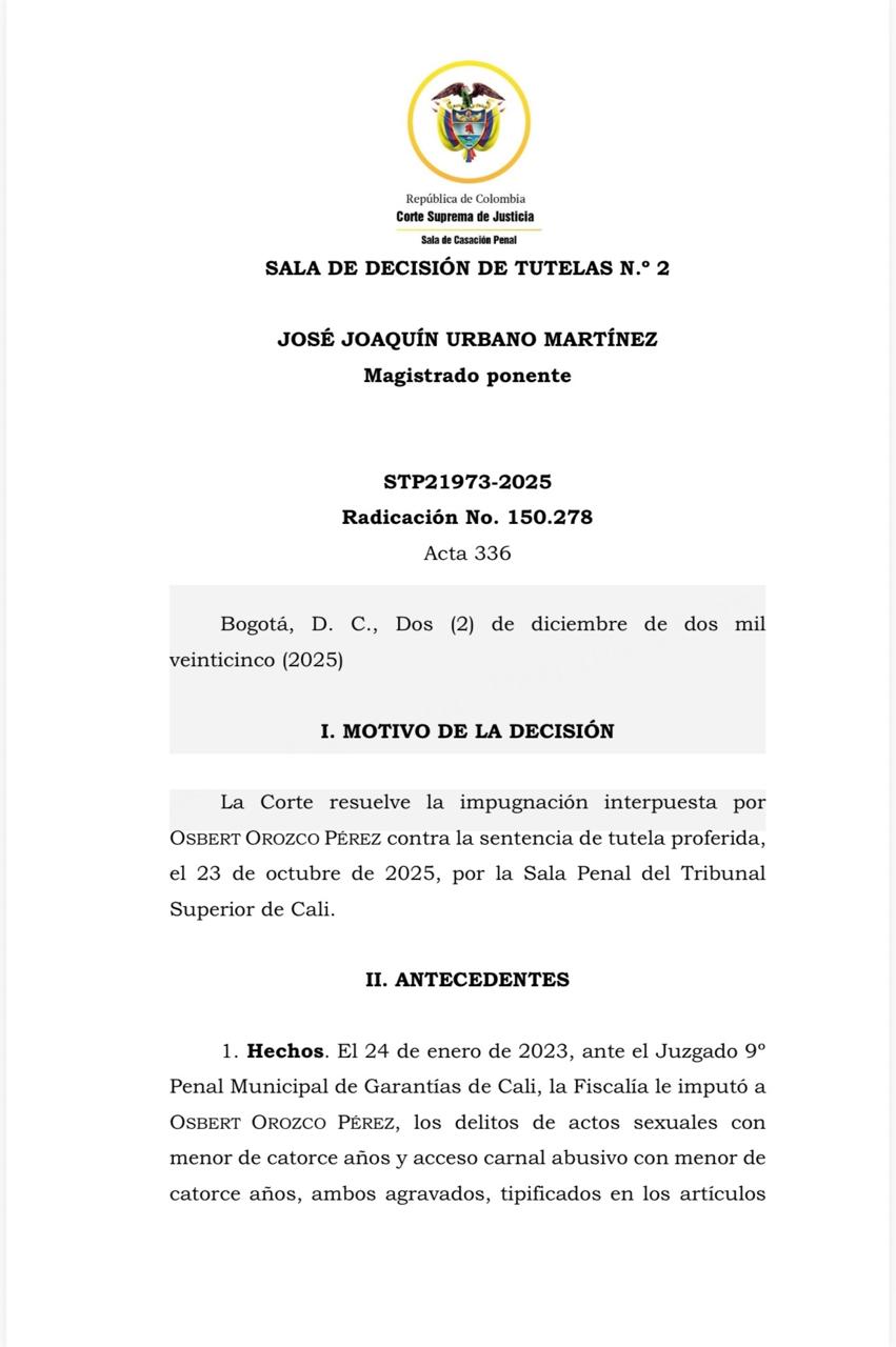 Los hechos se remontan al 24 de enero de 2023, cuando la Fiscalía imputó a Orozco Pérez por los delitos de actos sexuales con menor de catorce años y acceso carnal abusivo, ambos agravados.