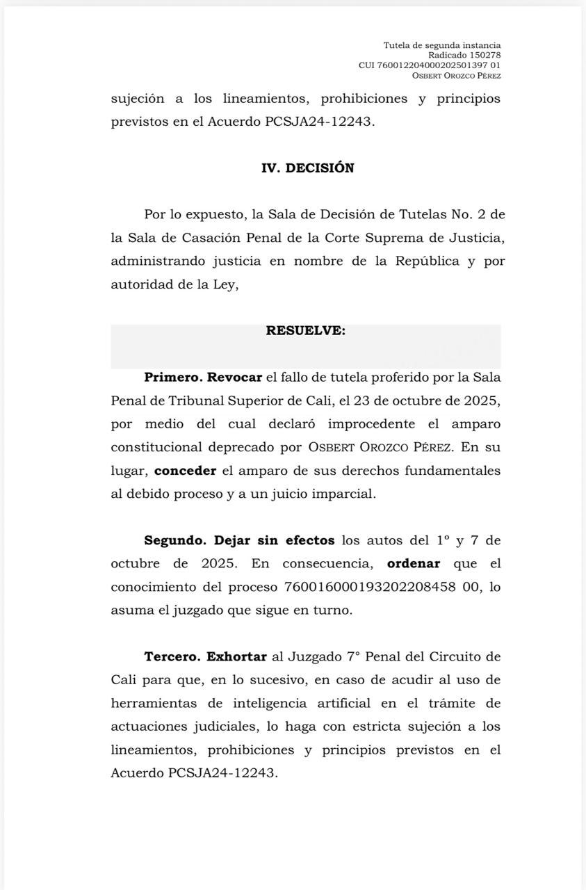 Juez de Cali profirió condena de 18 años con inteligencia artificial sin finalizar juicio oral: Corte Suprema intervino
