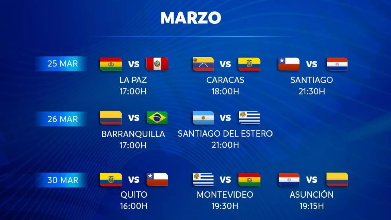Aquí el listado de todos los horarios y fechas de las eliminatorias de la Conmebol: