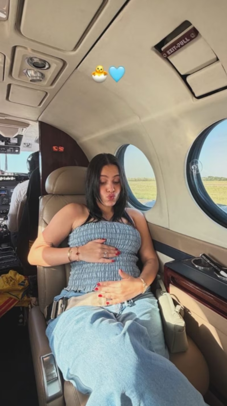 Más tarde, Ponce compartió en su cuenta de Instagram una fotografía en la que aparece acariciando su vientre, acompañada de un mensaje de agradecimiento y emoción por la nueva etapa que vive junto al futbolista. La imagen, tomada en el interior de un avión privado y acompañada por un corazón azul, generó especulaciones entre sus seguidores sobre el sexo del bebé.