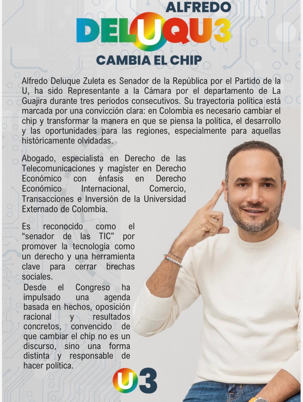 El nombre de Alfredo Rafael Deluque Zuleta se ha convertido en uno de los más reconocidos de la política guajira en la última década. Abogado de formación, con trayectoria en el Congreso y perteneciente a una familia con larga presencia en la vida pública del departamento, Deluque representa a una generación de dirigentes caribeños que han construido su carrera entre el derecho, la regulación económica y la política regional.