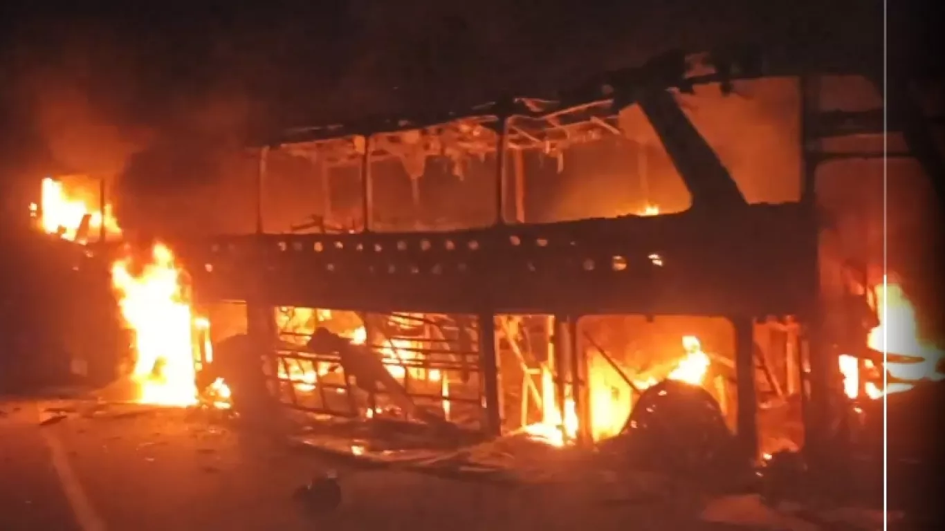 Los delincuentes obligaron a los ocupantes a bajar y, tras rociar el bus con gasolina, detonaron dos granadas en su interior, dejando el vehículo completamente destruido.