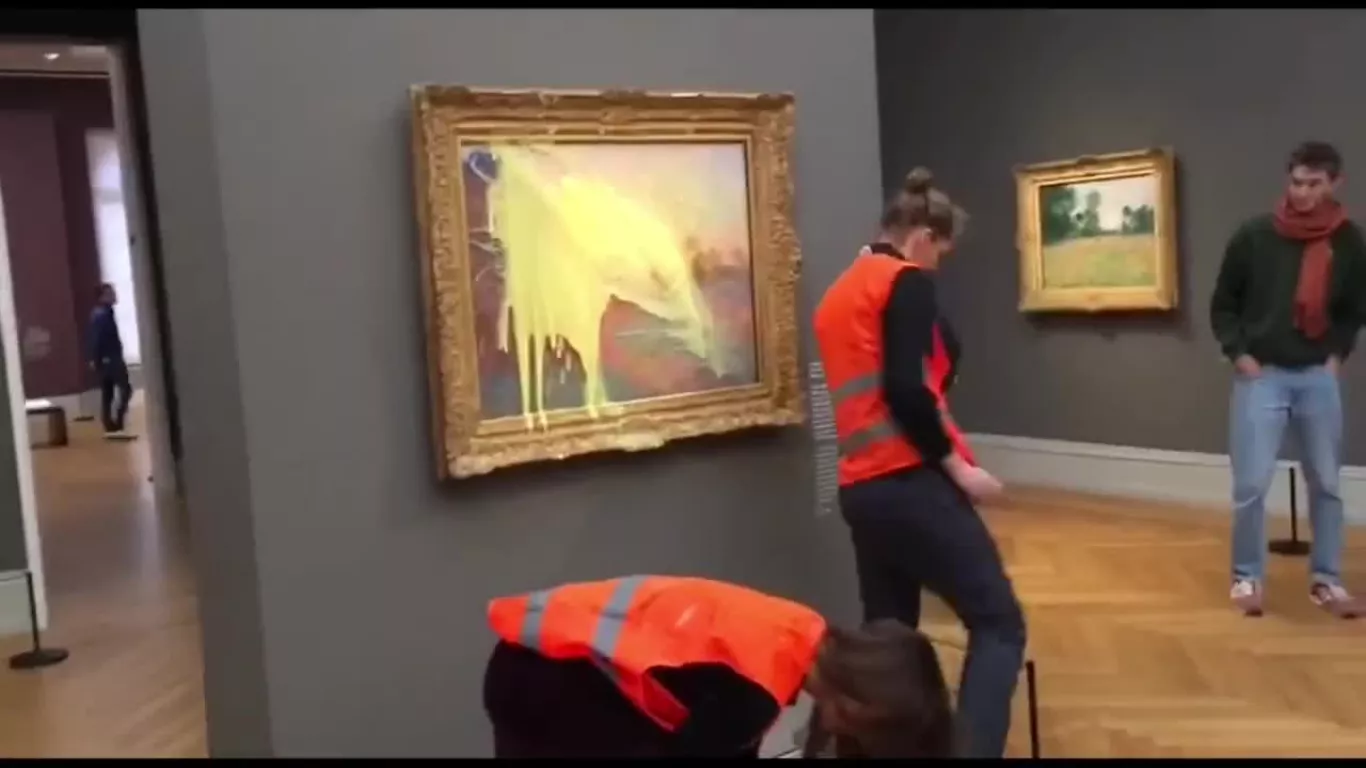 Dos activistas climáticos lanzaron puré de patata a un cuadro de Monet en Alemania