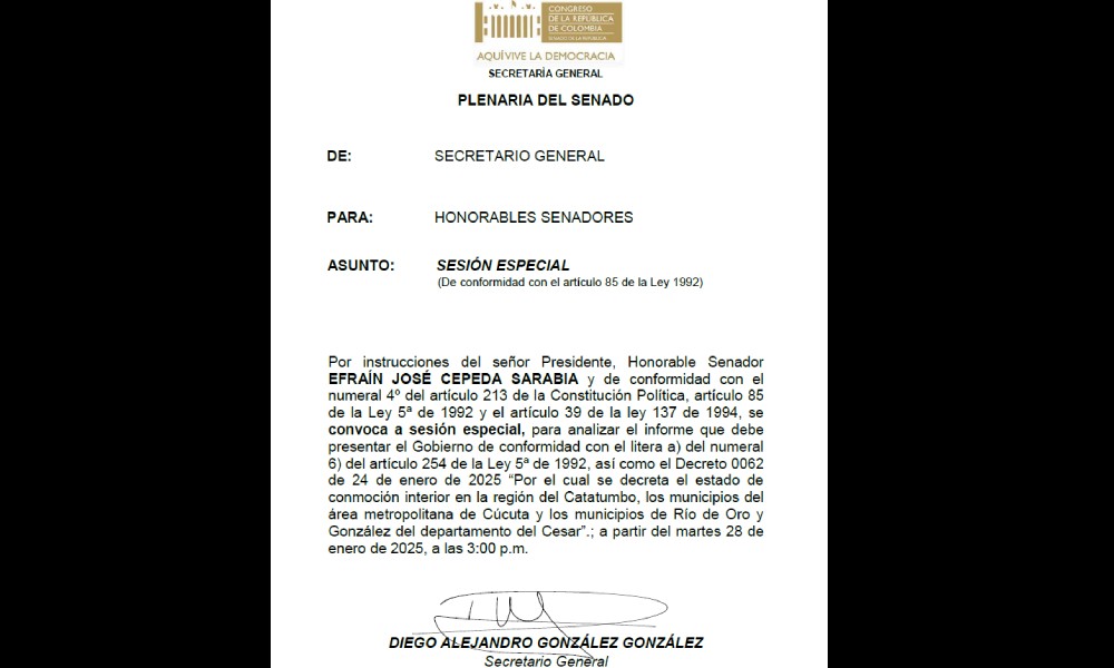 Las corporaciones revisarán el decreto 0062 del 24 de enero de 2025, firmado por el presidente Gustavo Petro, en el que se declara el Estado de conmoción interior en la región del Catatumbo, Norte de Santander, y municipios de Cesar.