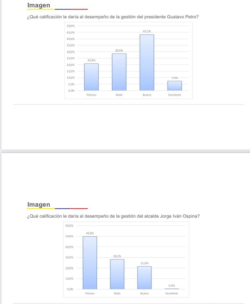 El sondeo midió aprobación de gestión del presidente, alcaldes y candidatos de Bogotá, Cali, Medellín y Barranquilla.