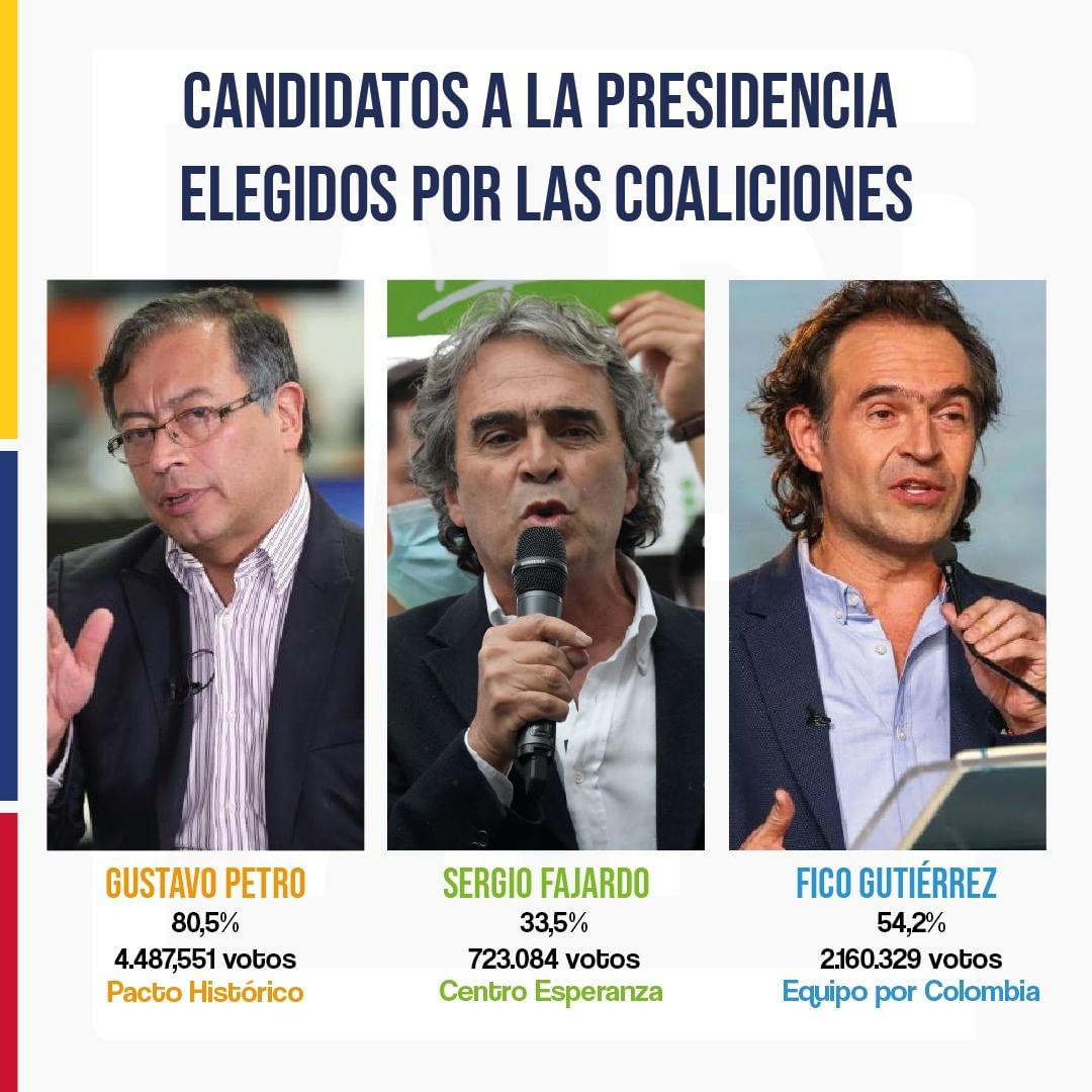 Por otro lado, sobre las consultas interpartidistas, luego de realizada la consolidación de las mesas de votación instaladas en Colombia y en el exterior se obtuvo el siguiente resultado: