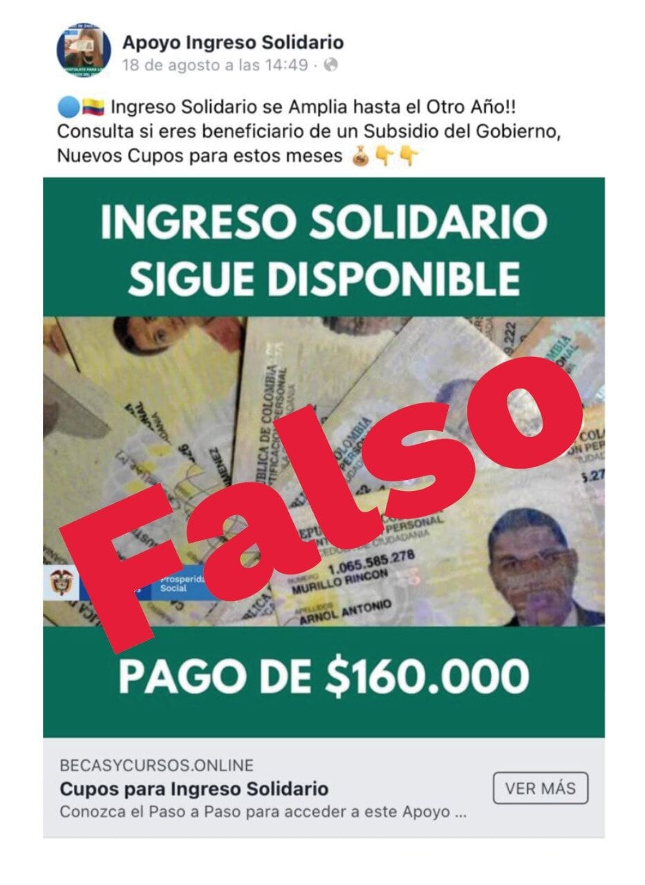 “¡Tengan cuidado! Alertamos a la ciudadanía sobre publicaciones que ofrecen supuestos subsidios de Ingreso Solidario. Reiteramos la importancia de verificar siempre la información y consultar en sitios web oficiales que incluyan el dominio ‘GOV.CO”.