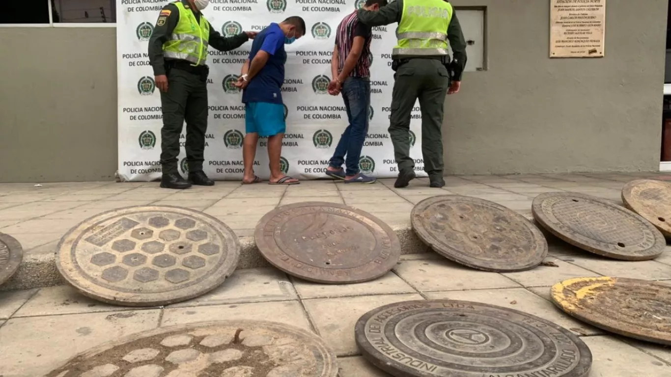 Dos ciudadanos venezolanos fueron capturados por la Policía de Bucaramanga con tapas de alcantarillas robadas. Según las autoridades, los ciudadanos fueron capturados mientras guardaban 15 tapas de alcantarilla que habían sido reportadas como robadas.