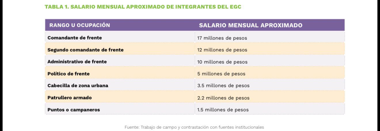 Esta distribución coincide con análisis previos del International Crisis Group y del Observatorio de Conflictividades de Indepaz, que han documentado la capacidad financiera del grupo para sostener esquemas de reclutamiento, suplir bajas y garantizar la continuidad de operaciones en territorios donde mantiene disputas con otras estructuras.