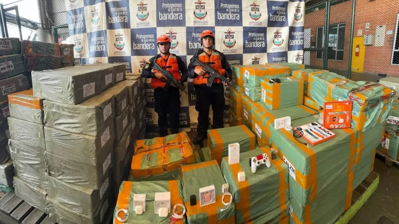 En un operativo de control marítimo en el puerto de Buenaventura, la Armada de Colombia incautó mercancía de contrabando valorada en más de $5.000 millones. El cargamento, que provenía de la zona franca de Ciudad Colón, en Panamá, contenía artículos tecnológicos como audífonos, cargadores móviles, relojes inteligentes y gafas que no contaban con la documentación ni los permisos legales requeridos para su ingreso al país.